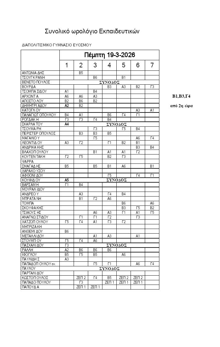 Πρόγραμμα Τετάρτης 18/03